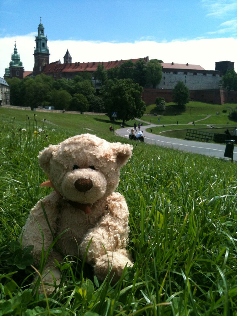Fluffy in front of his castle in Krakow, Poland
