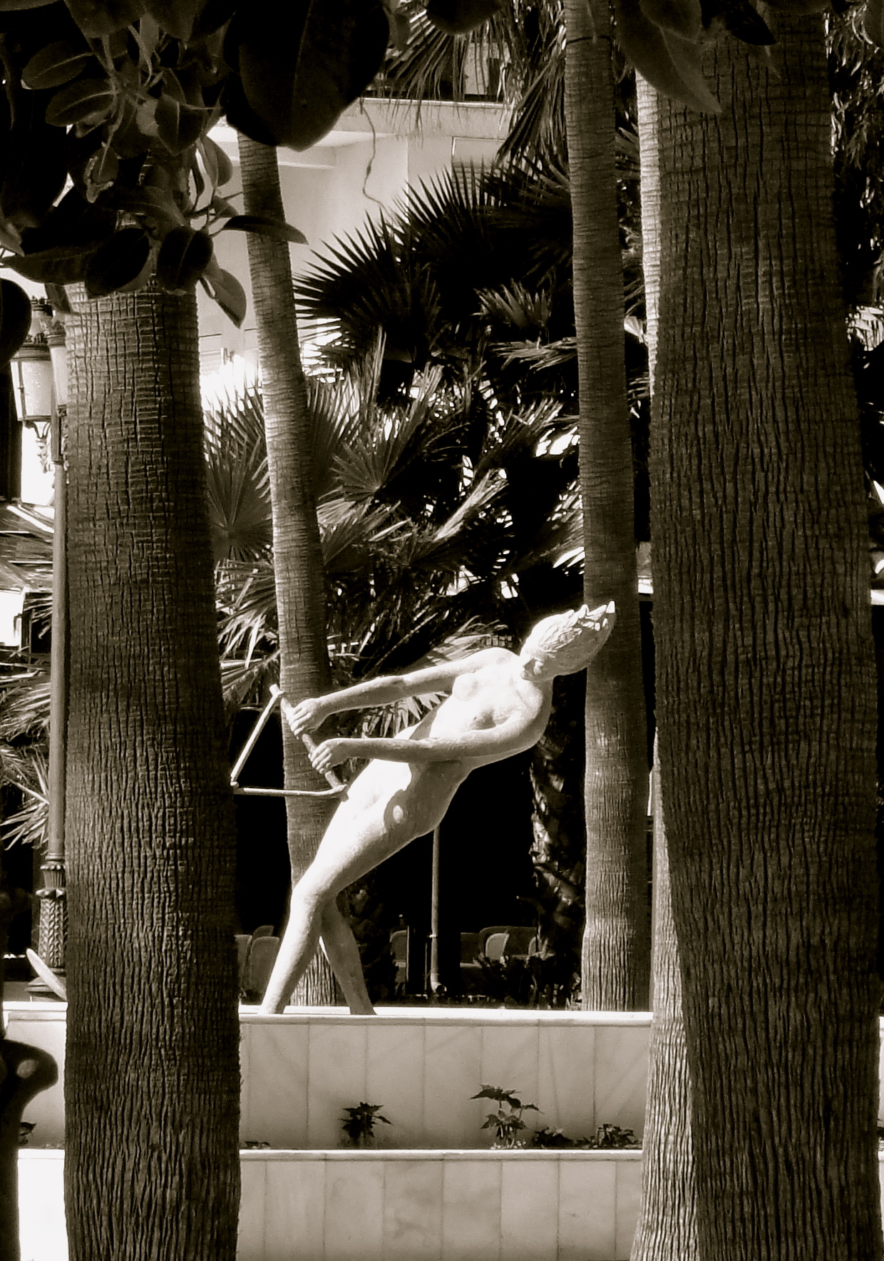 Focus on an interesting sculpture of a waterskier in a moment of frozen action