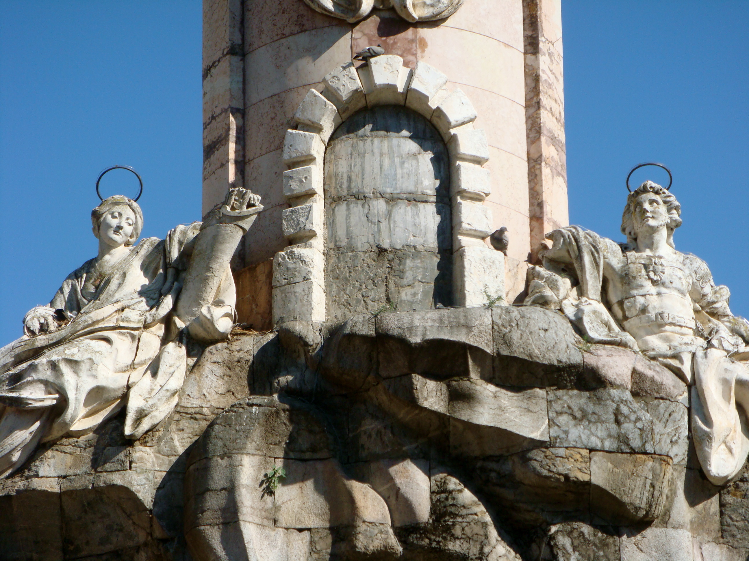 The heavily baroque intervention of the Catholic architects jar with the Islamic mosque beyond