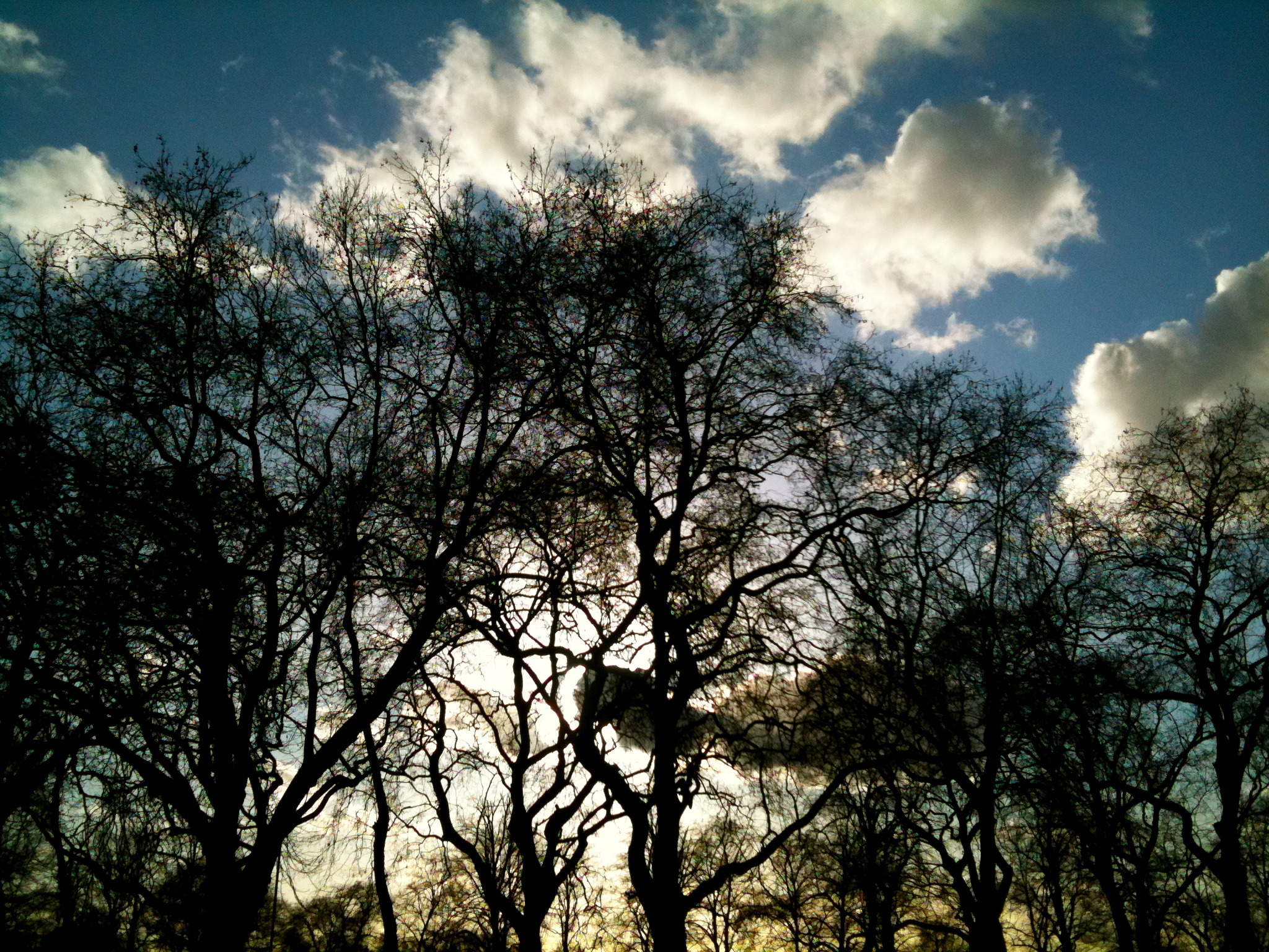 Winter trees silhouette against a powerful sky