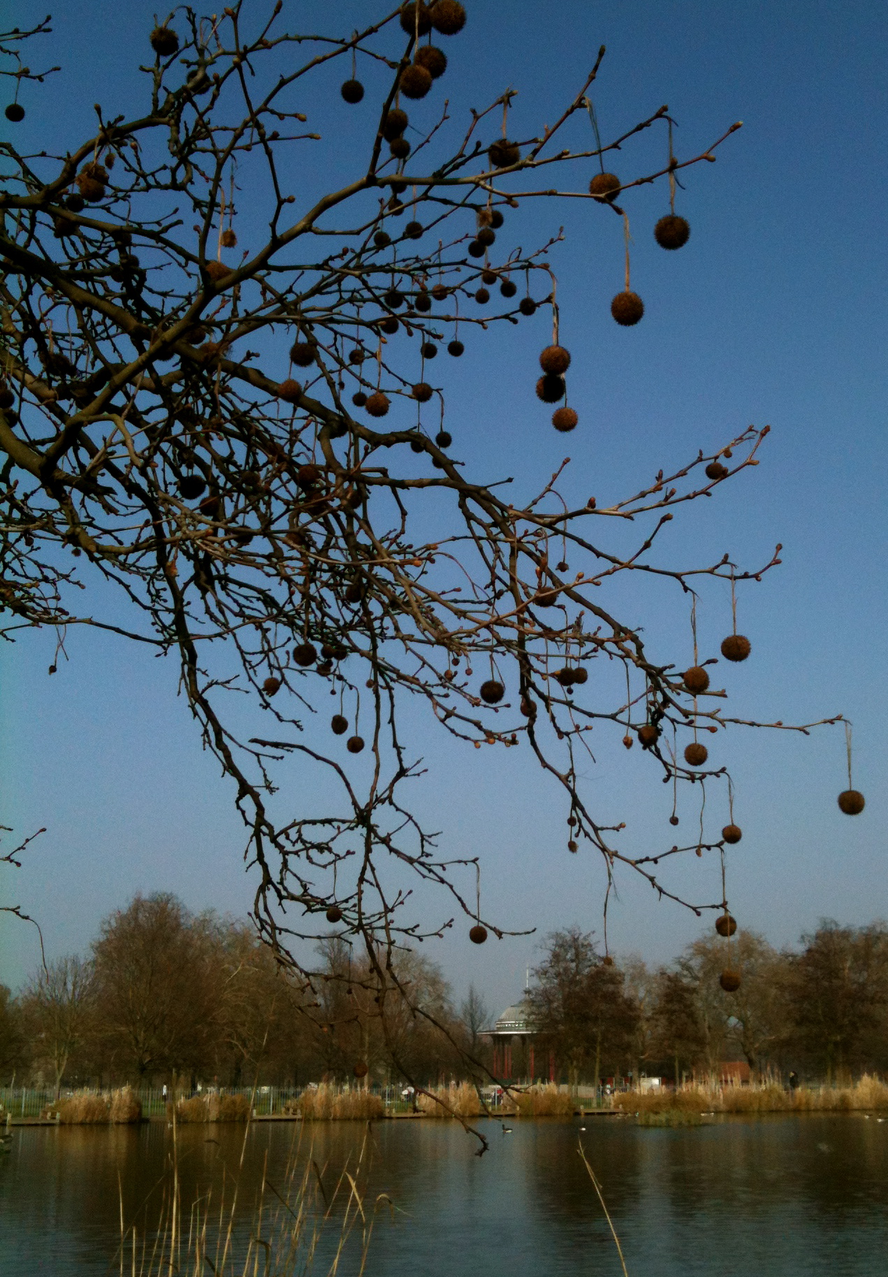 These autumnal pods, now left over into the Spring, look reminiscent of christmas baubles