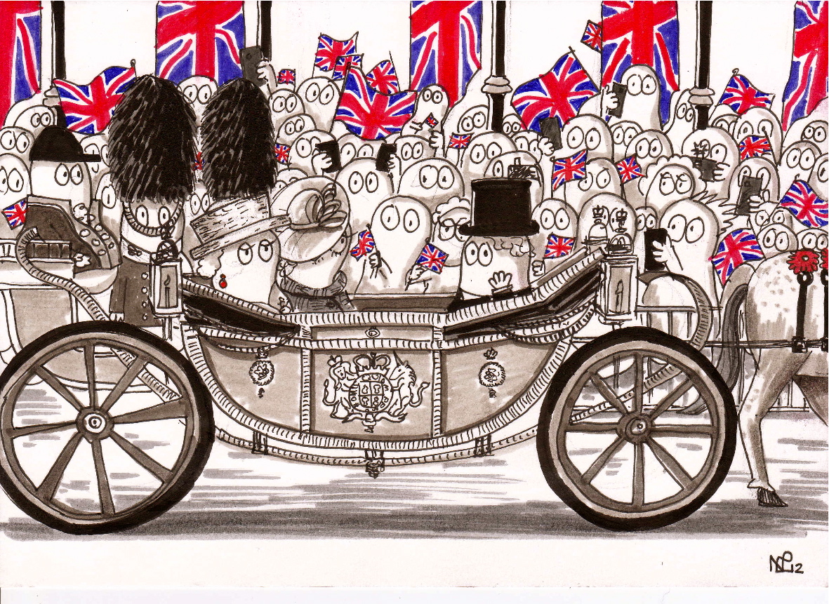 Since words are insufficient to express the brilliance with which London erupted into Jubilee carnival this weekend, I have scanned the internet, collecting together a series of photos which show just how incredible London looked as millions celebrated this weekend. But before you take a look at those, cast your eye over this little sketch which I made as the celebrations progressed. For in Norm world, they too have celebrated the Diamond Jubilee, lining the streets, waving the flag, and celebrating 60 fantastic years of their Queen. Long may it continue!
