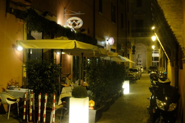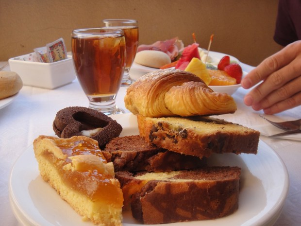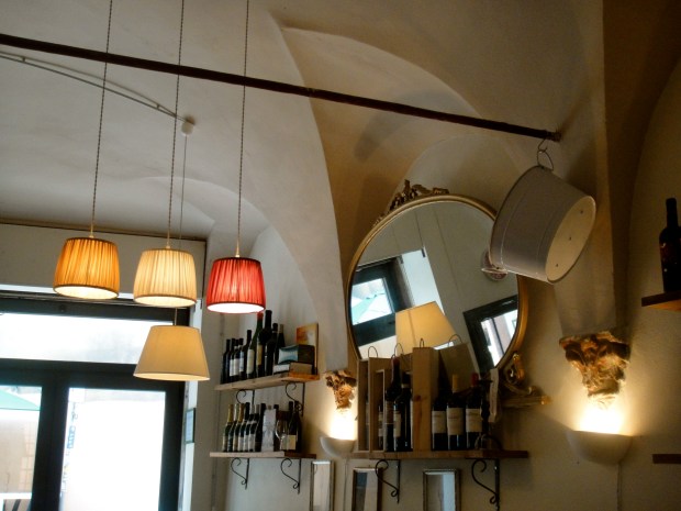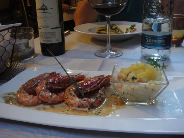 Our third dinner was at the super cute Ristorante Teresina di Fuggetta Sebastiano (Via Oberdan, 4), not so much on a side street as much as in a side alleyway – the tables were artfully squeezed in between one leaning old palazzo and another, and the affect was truly cosy and unique, and the later addition of a harp player added a further garnish of romance to the air. Sadly I neglected to take any photos capable of public consumption – the wine caused significant blurring on the old camera – damn that tempting Sangiovese! However the food was super-tempting too. We started with a pea and mint garnished prawn dish, followed by a succulent steak tagliata accompanied by rosemary potatoes. Dessert was a creme caramel of sorts, which my partner declared, with some audacity (clearly bolstered by the Sangiovese) to be better than mine! He was clearly drunk.