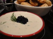 This one is slightly more controversial as it’s meant to be a mousse, but for some reason mine wouldn’t set. However, it turned out very well as a dip for the variety of crackers we had at the party, so why not add it in here. All I did was to whizz up 165g of smoked trout in a food processor with 225 g of creamed cheese, a squeeze of lemon juice, a sprinkle of dill (to taste) and 2 tablespoons of cream (it could be the cream which prevents it from setting – perhaps try without – I didn’t have time). If you have the time to chill the mixture and get it into a neat piping bag, you will probably succeed where I failed in piping little individual canapes of the mousse onto a blini or even a slice of cucumber. This looks great with some caviar on top. But failing that, serve it up as a simple dip – it’s delicious, especially when eat with the anchovy palmiers.