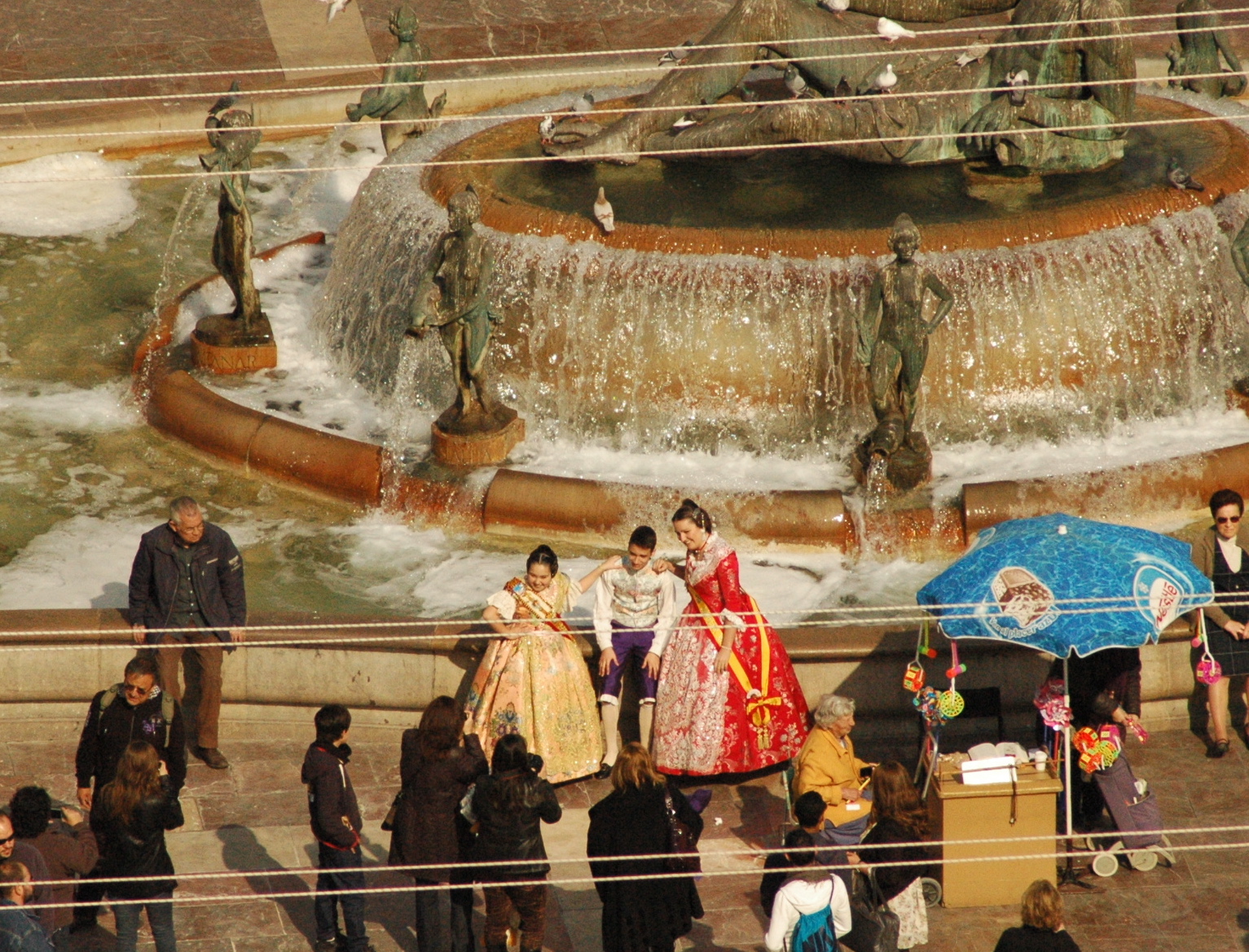 So with a taste for the city’s multi-faceted personality, we spent our morning ambling contentedly from one square to another, down narrow little streets full of souvenir shops and cafes, photographing fountains and statues of (sometimes headless) saints and sinners, and noting the details of human gargoyles and colonnaded arches, heavily decorated churches and shady orange-tree lined courtyards which fill the old quarter.