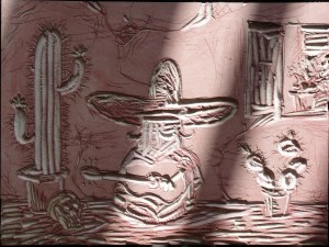 The result is something a little coarse, but it’s a finish which I think works really well with the theme – Mexican Norm! Here is the finished print (I printed an edition of 5):