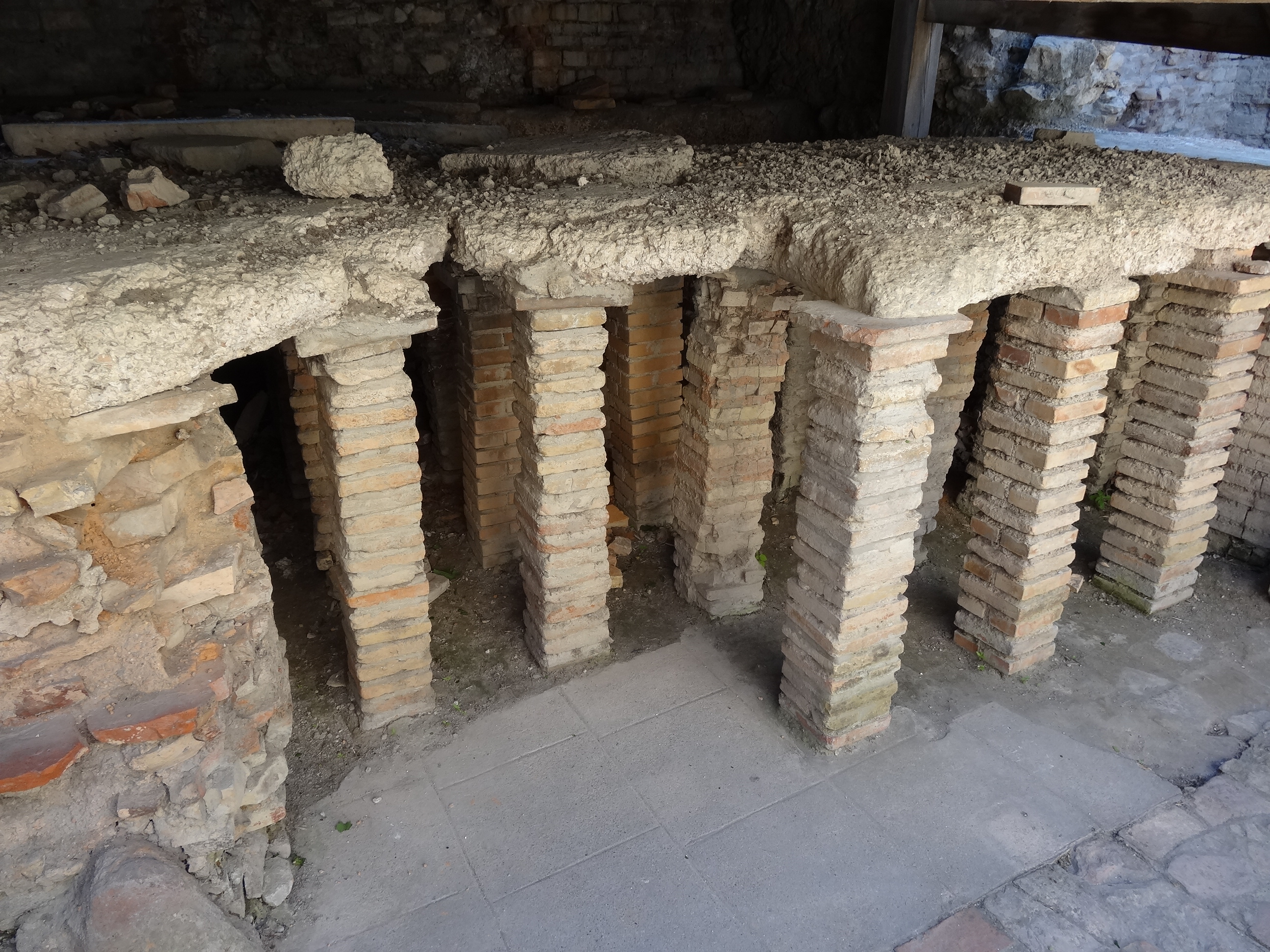 Our plan was met with little success at the first of our stops – the old Baths of Constantine – which were situated right next to the Rhône which of course was the apex of the storm. Despite this unwelcome tour partner, we were nevertheless wowed by yet another startling well-preserved example of Roman architecture, the ruins including an imposing semi-circular wall bearing the signs of the baths’ former magnificence, their size testament to their use as public baths for all of the town. It was, as ever, fascinating to see the remnants of how ingeniously the Romans had used underfloor heating to heat the water, and how masterfully they had constructed their buildings as evidenced so clearly by the strength of the leftovers still around today.