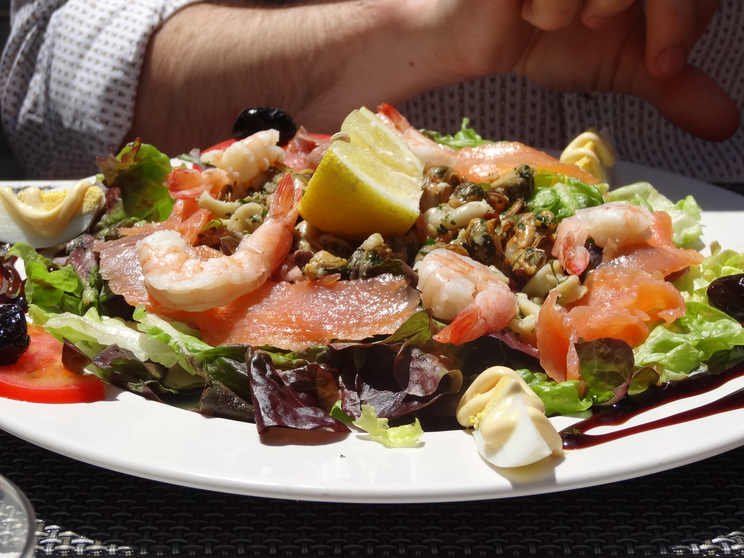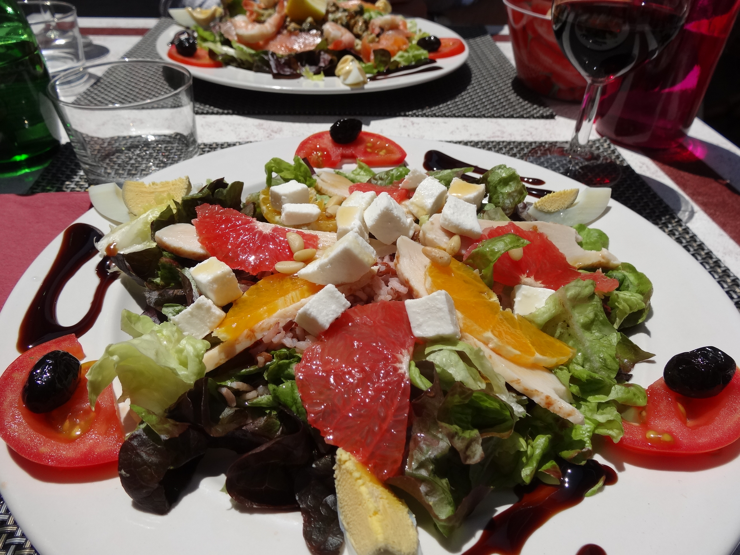 We had one of those rather embarassing moments on our second day in Arles when, eager to escape the vigorous Mistral wind and therefore sitting down at the first restaurant we came across with a sheltered position, we found ourselves, upon being handed the menu, faced with prices which were well in advance of our lunchtime budget. Splashing out in the evenings is one thing (you can barely do otherwise with Provence’s prices), but if we were to spend similarly at lunchtime, we wouldn’t be able to pay for a bed for the night. So when we sat down at a table outside l’Atelier de Jean-Luc Rabenel (otherwise translated as the studio of Jean-Luc Rabenel), we quickly discovered that we couldn’t afford it. So what did we do? We ran away! (We did however settle on a cute little cafe just down the street – check out these delicious salads…)DSC02928 DSC02929