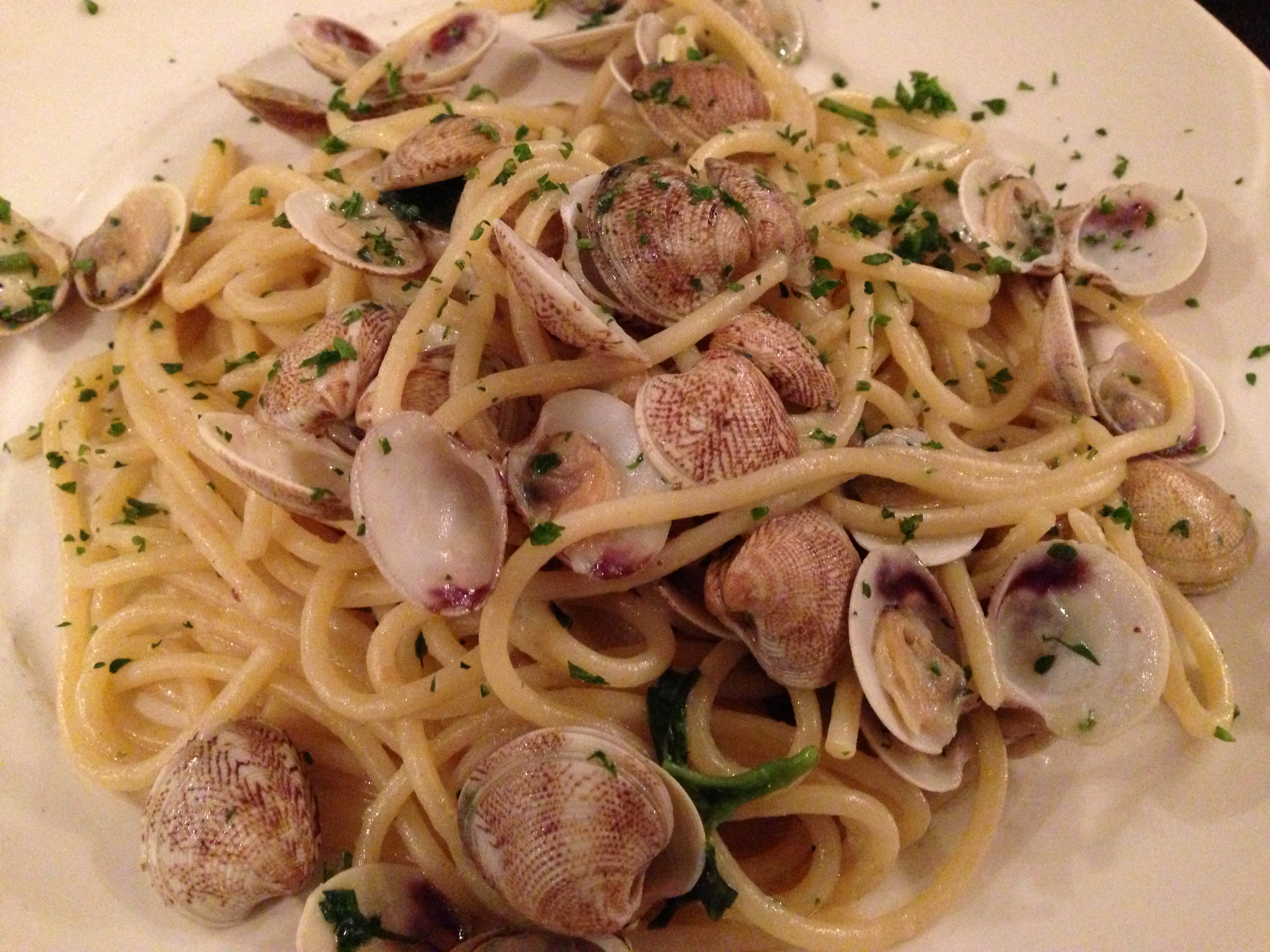 But the food was something beyond mere description – taste sensations which need to be sampled rather than photographed or described. But in an attempt to at least provide some insight into that perfect little meal, let me tell you that my pumpkin and shrimp ravioli with which I started (but alas did not photograph) was amongst one of the best dishes of food I ate in 2013 – perfectly cooked al dente pasta, with a fusion of sweet creamy pumpkin and delicate salty shrimp which had my palate dancing for joy. The creamy saffron gnocchi with fennel and prawns which I gorged upon afterwards did likewise. For Dominik meanwhile, the freshness of a squid salad presented all of the benefits of eating in a city surrounded by water, while his main of spaghetti vongole made us realise just how mediocre the same dish can be when eaten locally in London.