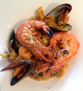And there we have it – my orzo paella, which can also be made with noodles, and just calls to be varied with all the different kinds of fish and shellfish that you desire. Buen provecho!