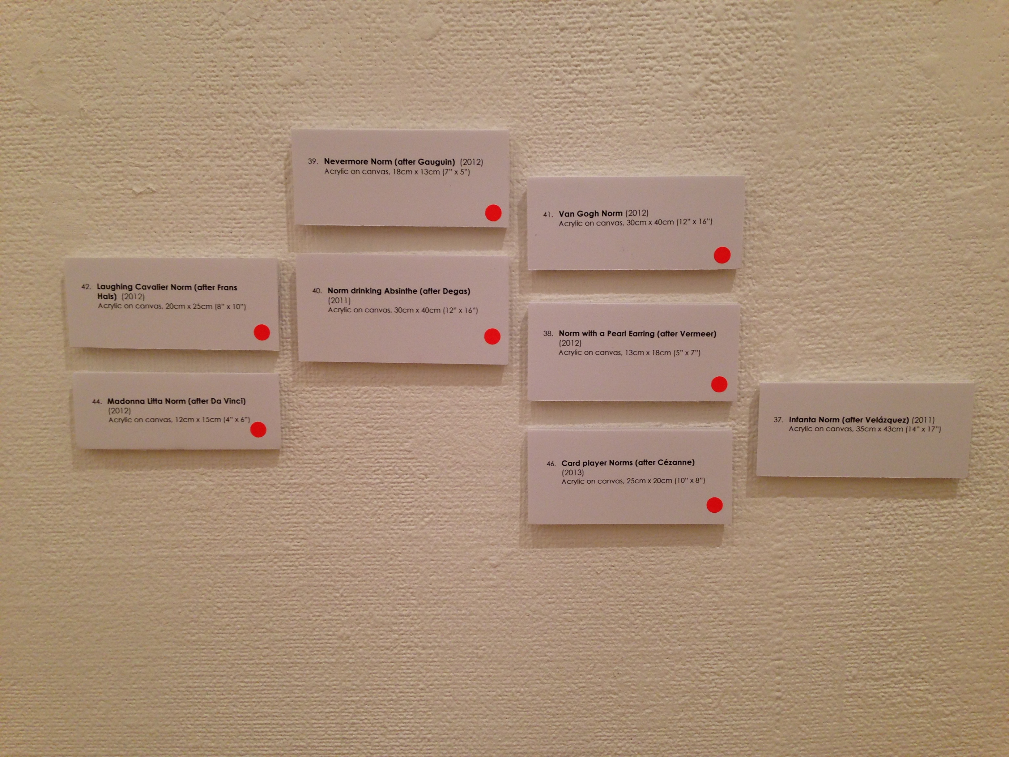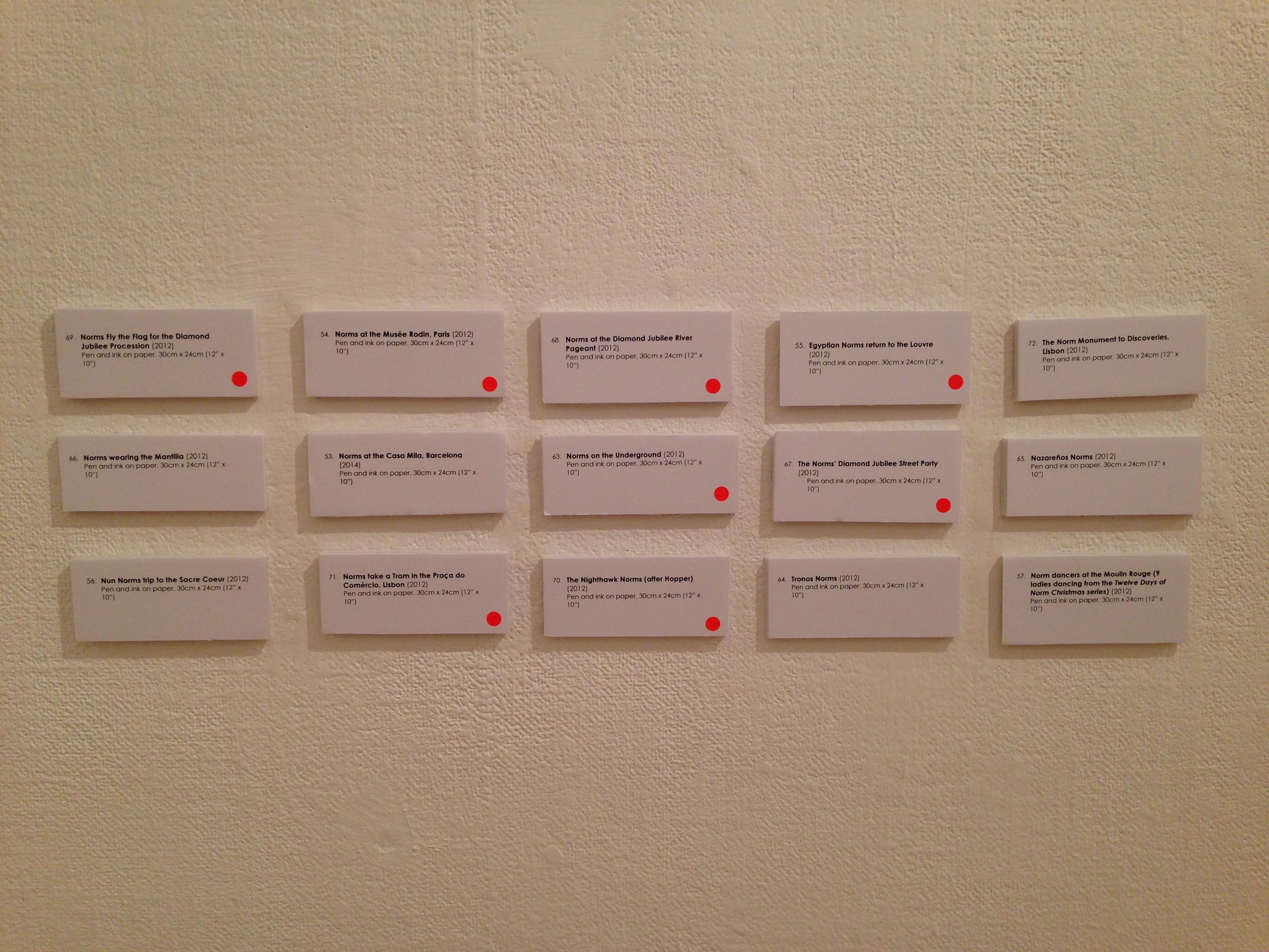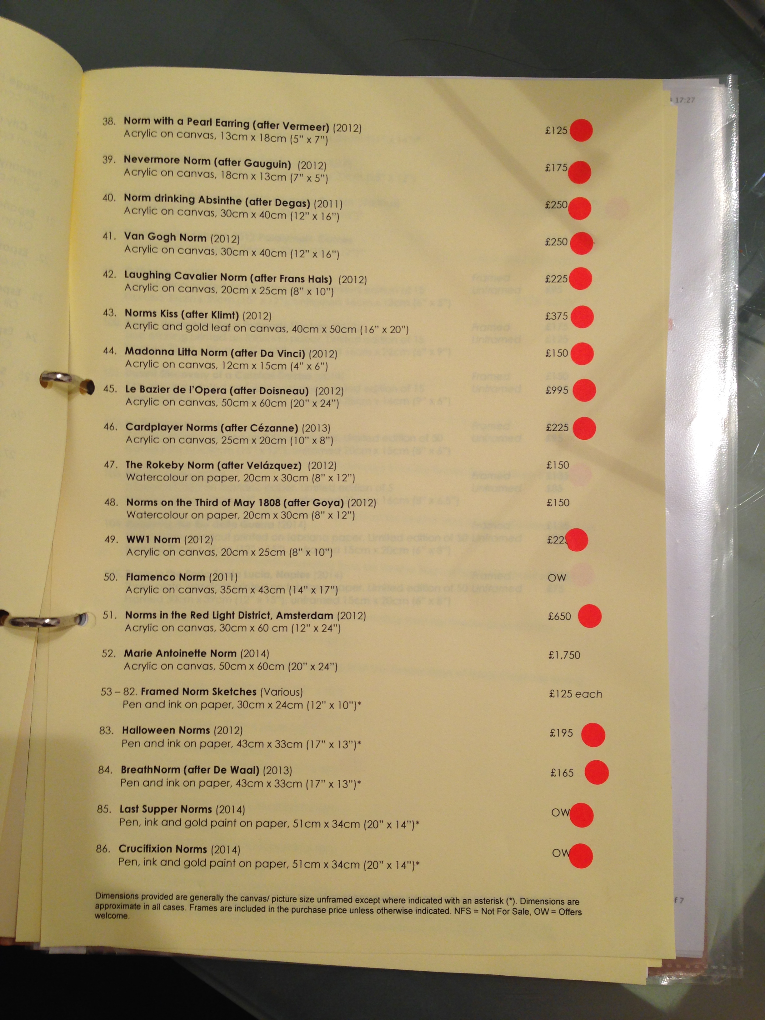 The collection of Norm paintings based on art historical masterpieces sold out, with only Infanta Norm, which I had saved for myself, remaining. My Norm sketches, made primarily as illustrations for this blog, also sold well, with at least half the collection emerging at the end of the exhibition with red dots upon their titles. And my latest endeavour – printmaking – sold similarly well, especially where the Norm, once again, had managed to creep into the image, making my prints a further attraction to the art-buying, Norm-loving public.