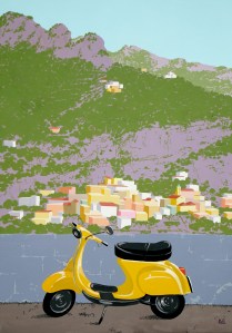 Art-in-Amalfi – Painting 4: Positano IV (Yellow Vespa)