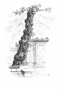 Tree in the Plaza Bib-Rambla, Granada (2016 ©Nicholas de Lacy-Brown, pen on paper)
