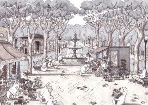 Norms on La Rambla (2016 © Nicholas de Lacy-Brown, pen on paper)