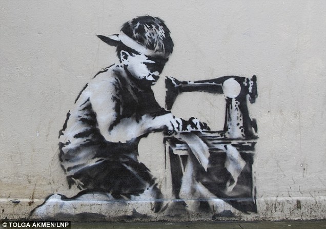 But the artist’s more pressing statement relates to the child labourer, and gives clues as to why Banksy (or whoever it was) chose the location he did: two years ago Poundland was involved in a scandal surrounding a boy of seven who was found to be working 100 hours a week in an Indian sweatshop producing goods for the store. The child, known as Ravi, was reportedly earning just 7p a hour to make napkin rings for the cut-price chain. The company severed ties with the supplier at the time and issued a statement saying it ‘did not tolerate child labour under any circumstances’. Which brings me to the point: is this contemporary statement of Banksy’s really that contemporary at all? Or did it take him two years to find a suitable wall to make his point about pound shop culture?