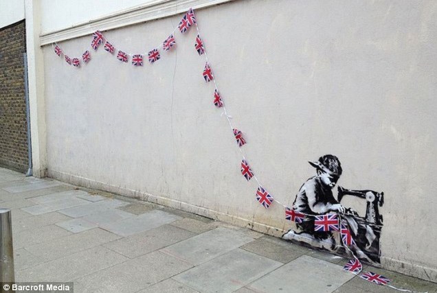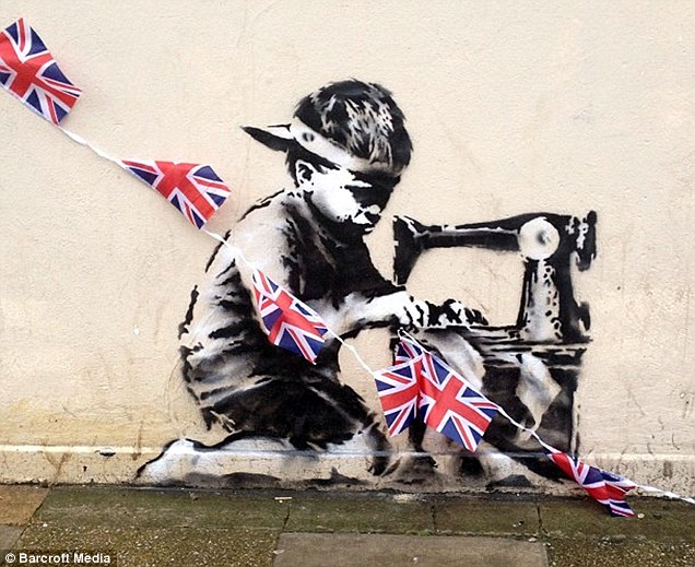 Nonetheless, while Banksy’s point may come a little too late in terms of the Poundland scandal, there can never be too much exposure of child labour. Meanwhile, for the owner of that wall, the appearance of a potential Banksy original will make him/her very happy indeed – past sales of Banksy graffiti have sold in six figure sums, just as long as you can somehow cut the graffiti and the wall away intact! Sadly, what the graffiti also demonstrates is the level of general disrespect which exists within British society. Within hours of the artwork being painted, the union jack bunting, which was stuck onto the stencil, had been stolen. How very predictable these idiots are. The bunting will be worthless detached from the stencil, but some parasites decided to steal it anyway. It may not have been Banksy’s intention, but that kind of behaviour is definitely something which deserves focused remonstration by everyone.