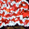 So the painting I post today is entitled, like the show, Tierra Lorca, for Granada is indeed the land from which Lorca came. With its simple shapes and a frame like the proscenium arch around a stage, this painting focuses on the line of poker straight cypress trees which so enthralled me, and the energetic movement of the incredibly agile flamenco dancers, illustrated by the rose like kinetic shape flowing onto (or off?) the stage. On the right, a black and white photo of Lorca reminds of the protagonist of the piece – a poignant memorial to a genius who himself put so many masterpieces on the stage.
